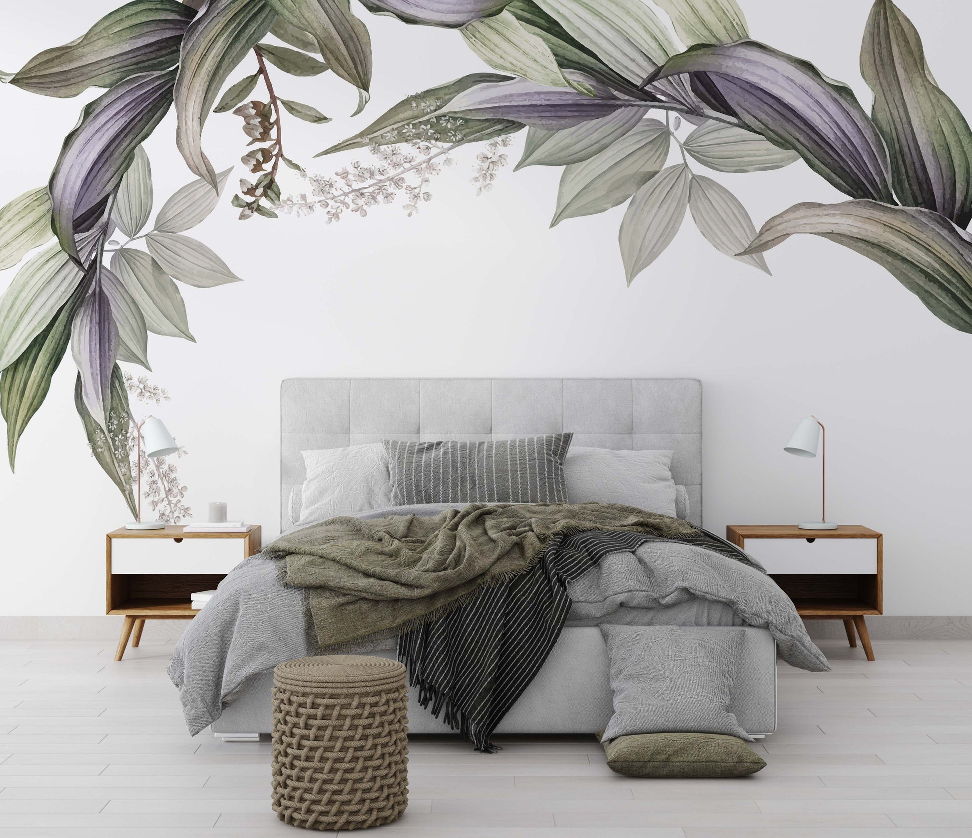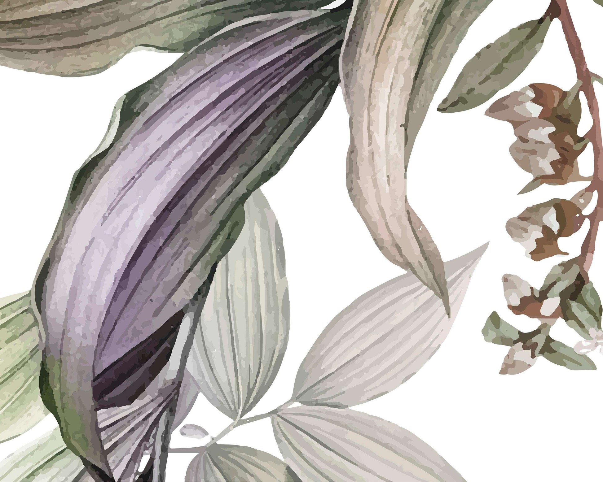 Instroduce the beauty of nature into your home with our Banana Leaves Wall Mural from Olively Home. This tropical foliage mural in mauve and green tones brings lush greenery and exotic plants right into your space.