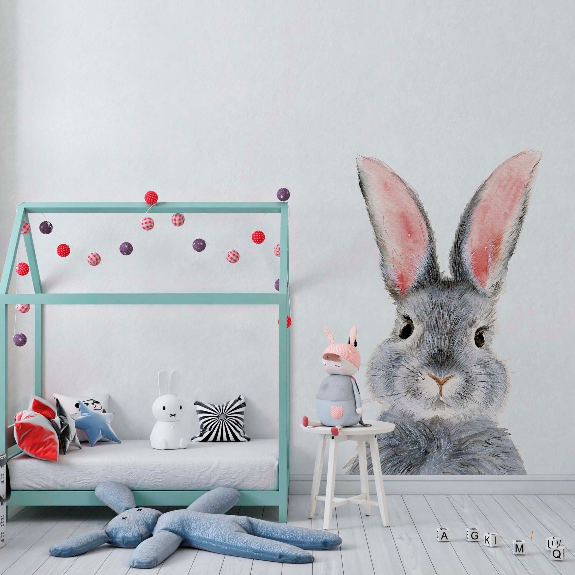 This captivating wallpaper design design features a playful giant rabbit in a dreamy watercolor style, creating a mesmerizing focal point for kids' decor. Whether you prefer the convenience of peel and stick or the timeless charm of traditional wallpaper, this mural offers an effortless way to transform any room into an imaginative wonderland. Perfect for bedrooms, playrooms, and nurseries, this mural is sure to spark your child's creativity and provide a unique, artistic touch to their space.